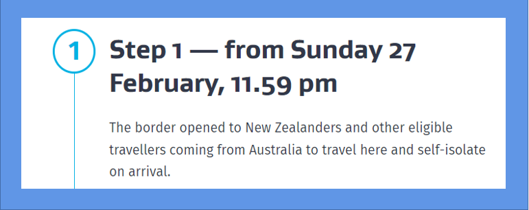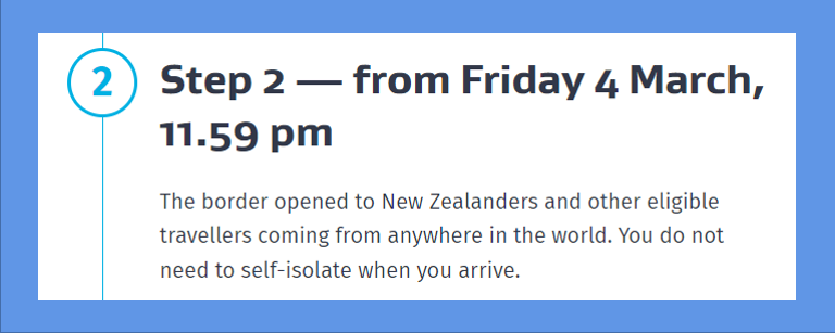 在本步骤实施两天后,也就是在3月2日星期三晚上11点59分或之后抵达新西兰,也不需要进入任何隔离。