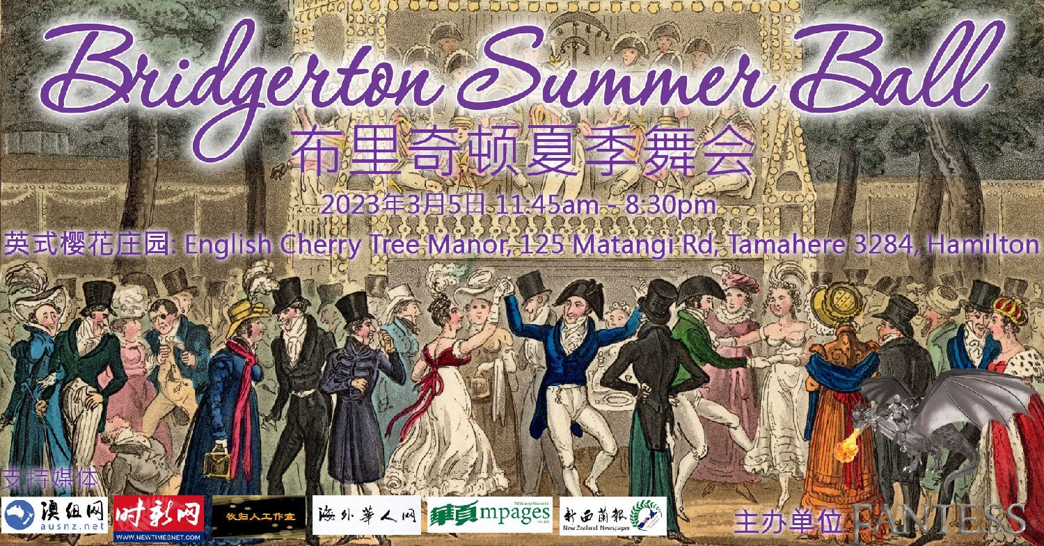 由新西兰梦幻中土(Fantess Ltd)主办的新西兰首次”布里奇顿夏季舞会”在2023年3月11日成功在汉密尔顿的英式樱花庄园举办。