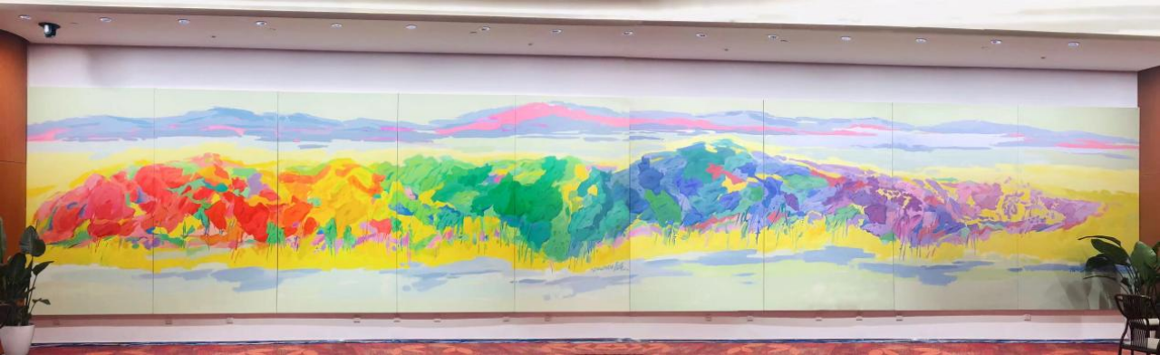 作为原籍杭州的新西兰华裔艺术家晨晓以他无可比性的中西方绘画语言、个性鲜明的色彩、表现主义的特点、极具意味的审美形式、中国文人画精神、独特的原创性风格,接受杭州亚组委邀请,专门为定制了三幅不同表现形式的:江山如此多娇《新富春山居图》系列巨幅作品,又衍生了两幅复制技术版的作品。