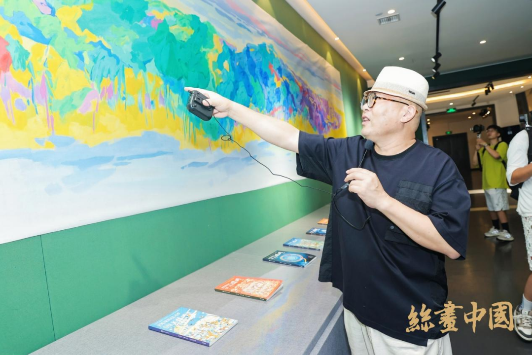 艺术家用水墨画泼墨写意之形式,不同色彩之间的交融,通过形和色的组合,作品在不断变幻视觉体验中,以多种维度和流动的曲线,以绵延的视觉美感和无穷的想象空间,呈现了西湖之荷、富春江畔、钱江之潮和当代中国的幸福家园。