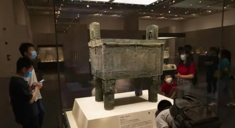 在中国国家博物馆展出的商周后母戊鼎。商后母戊鼎是已知中国古代最重的青铜器,是商周青铜文化的代表之作。(图/中新网)