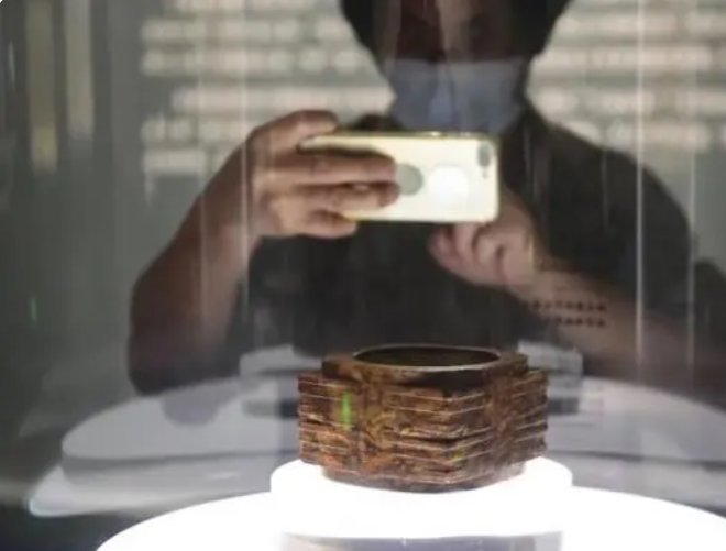 在中国国家博物馆展出的良渚文化的玉琮。(图/中新网)