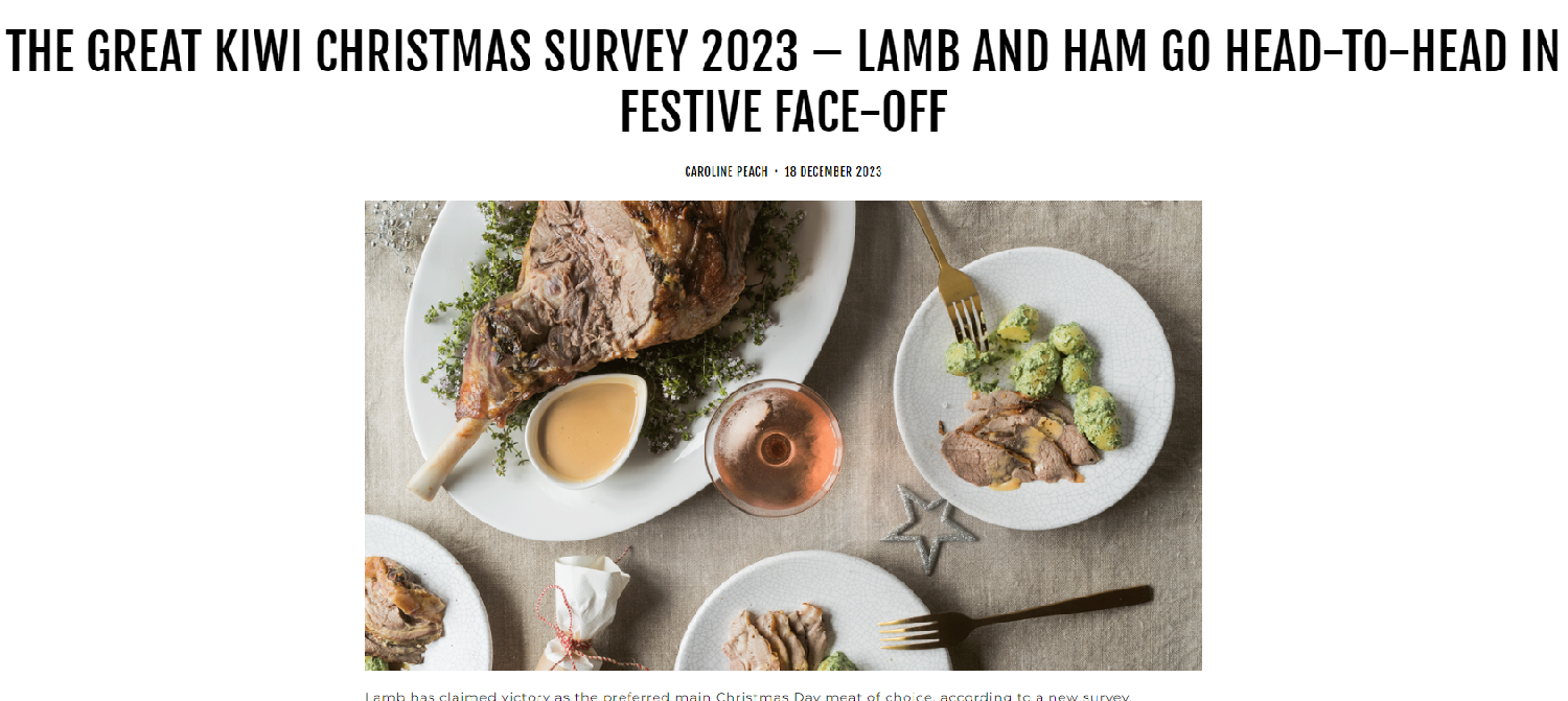 2023年度圣诞节调查显示,羊肉和火腿是新西兰人选择最多的圣诞节主要肉类。(图/Retail Meat New Zealand网站截图)