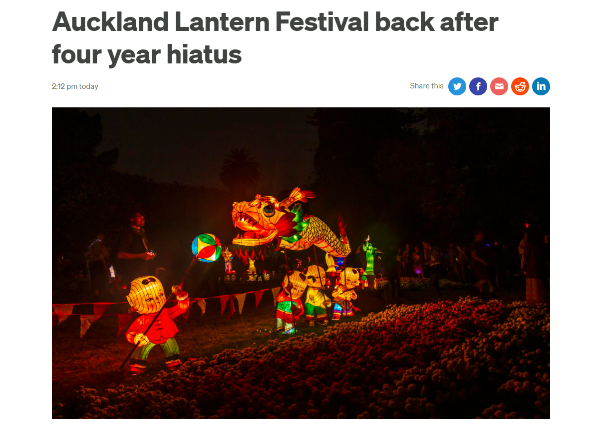 奥克兰元宵节花灯2月22日重磅回归。(图/RNZ网站截图)