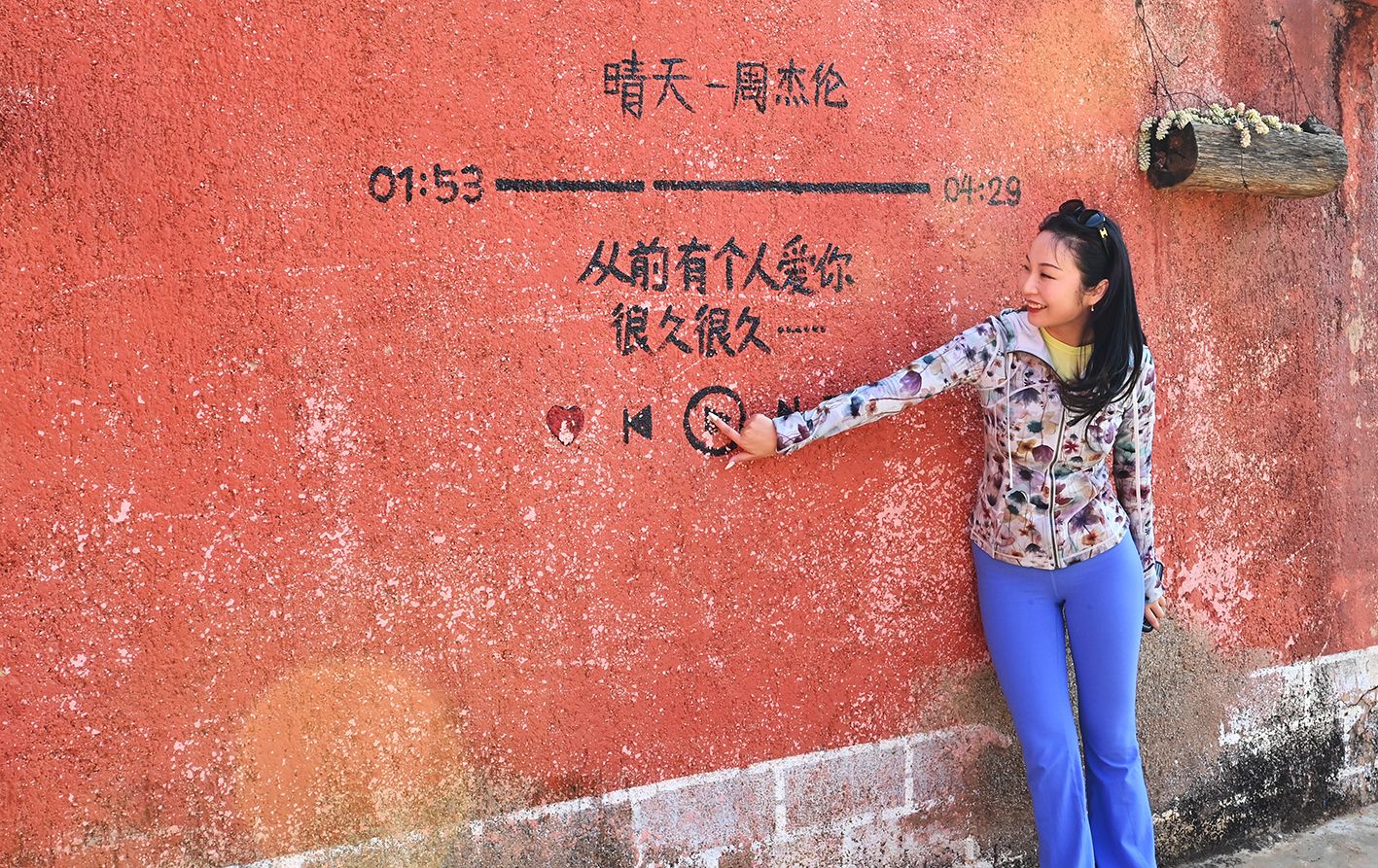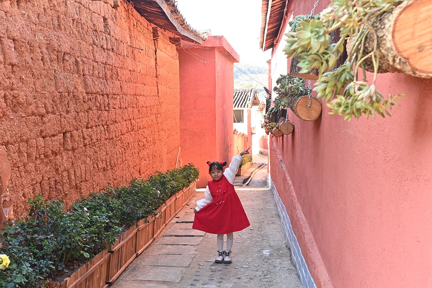 该村毗邻金沙江大峡谷,108国道纵贯其间,建村已有600余年,源为古丝绸之路驿站,后因明“洪武开滇”军屯聚居而成,是“中国历史文化名村”、“全国传统村落”。图为游客在村里拍照留念。(中新社)