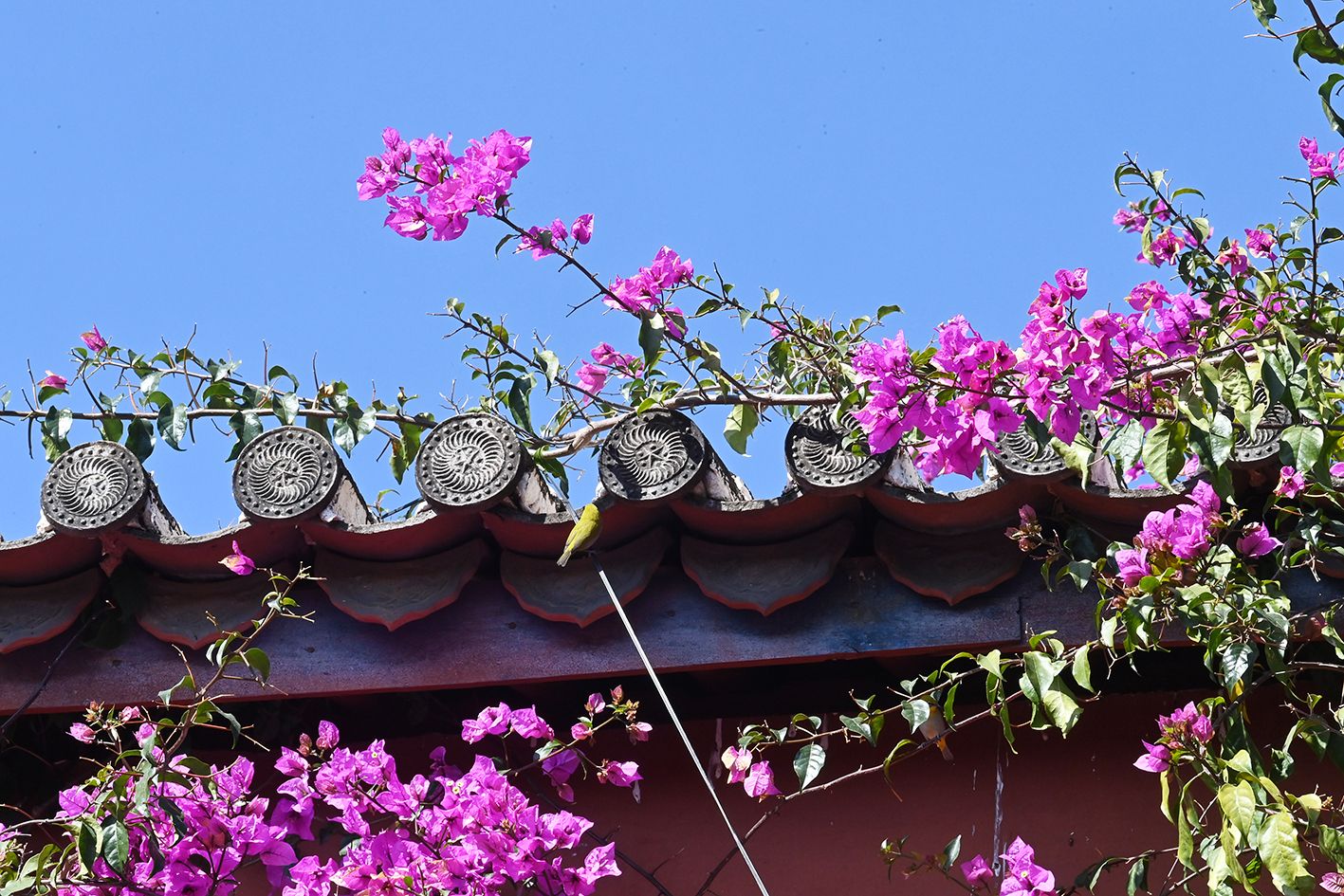 图为迤沙拉村内盛开的三角梅。(中新社)